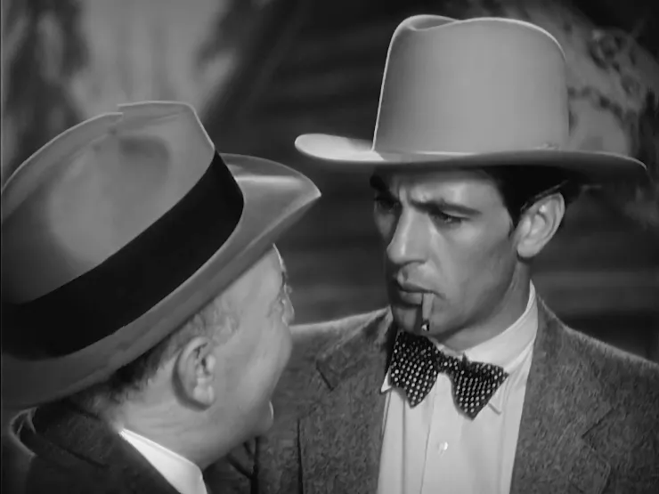 As he escorts Nan home from her contentious party, Kid declares the only solution to their problem is a “showdown” with Meskal, an obvious allusion to the standard Western shoot-out trope. As the film concludes, Kid and Nan even ride off into the sunset together, albeit in a car instead of on a horse. In other words, what begins as an Early Noir gangster story becomes a Cowboy Western Romance.